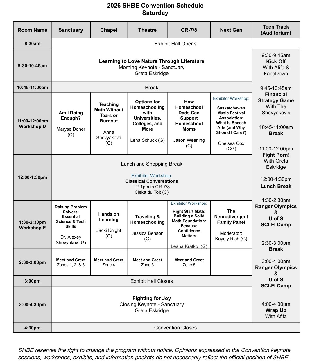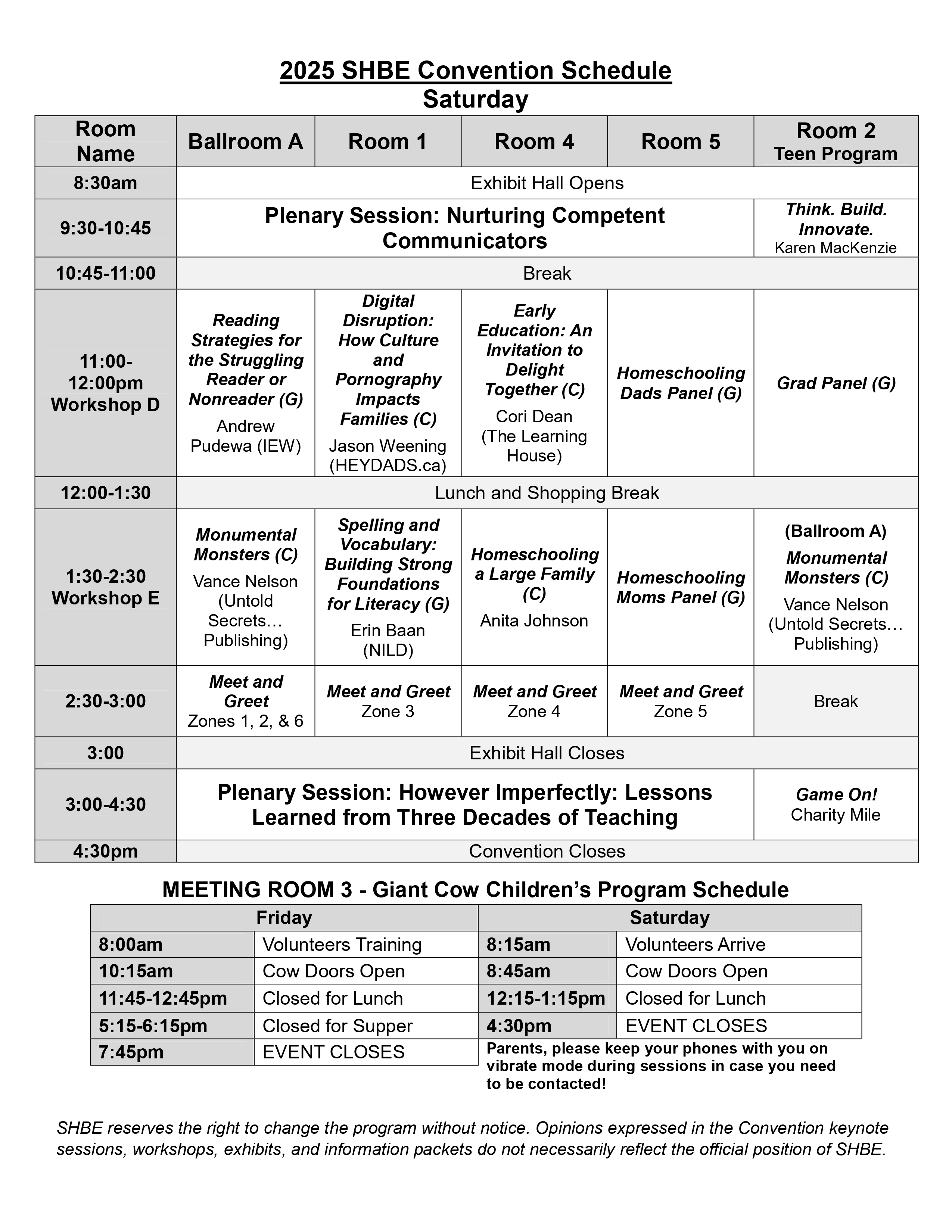 All feedback is read and discussed by the Convention Committee and SHBE Board, and taken into consideration while planning for the next Convention!